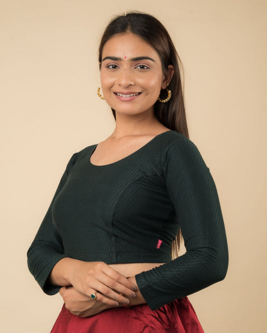 Leh Winter Geometric Self design High Back Long Sleeve Stretchable Saree Blouse