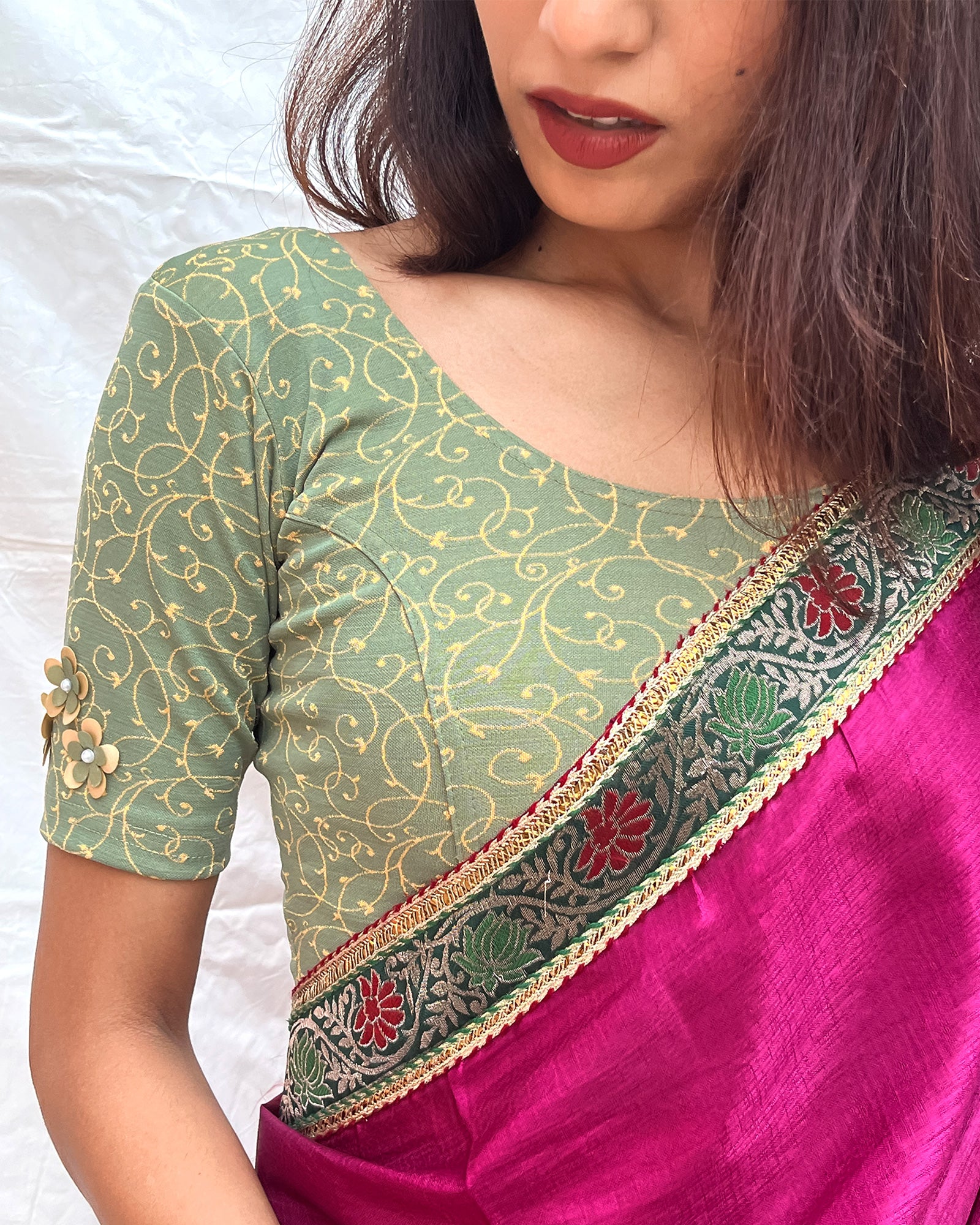 Blouses with metallic/ any embellishments, prints, zari, embroidery etc. - Dry Clean Only