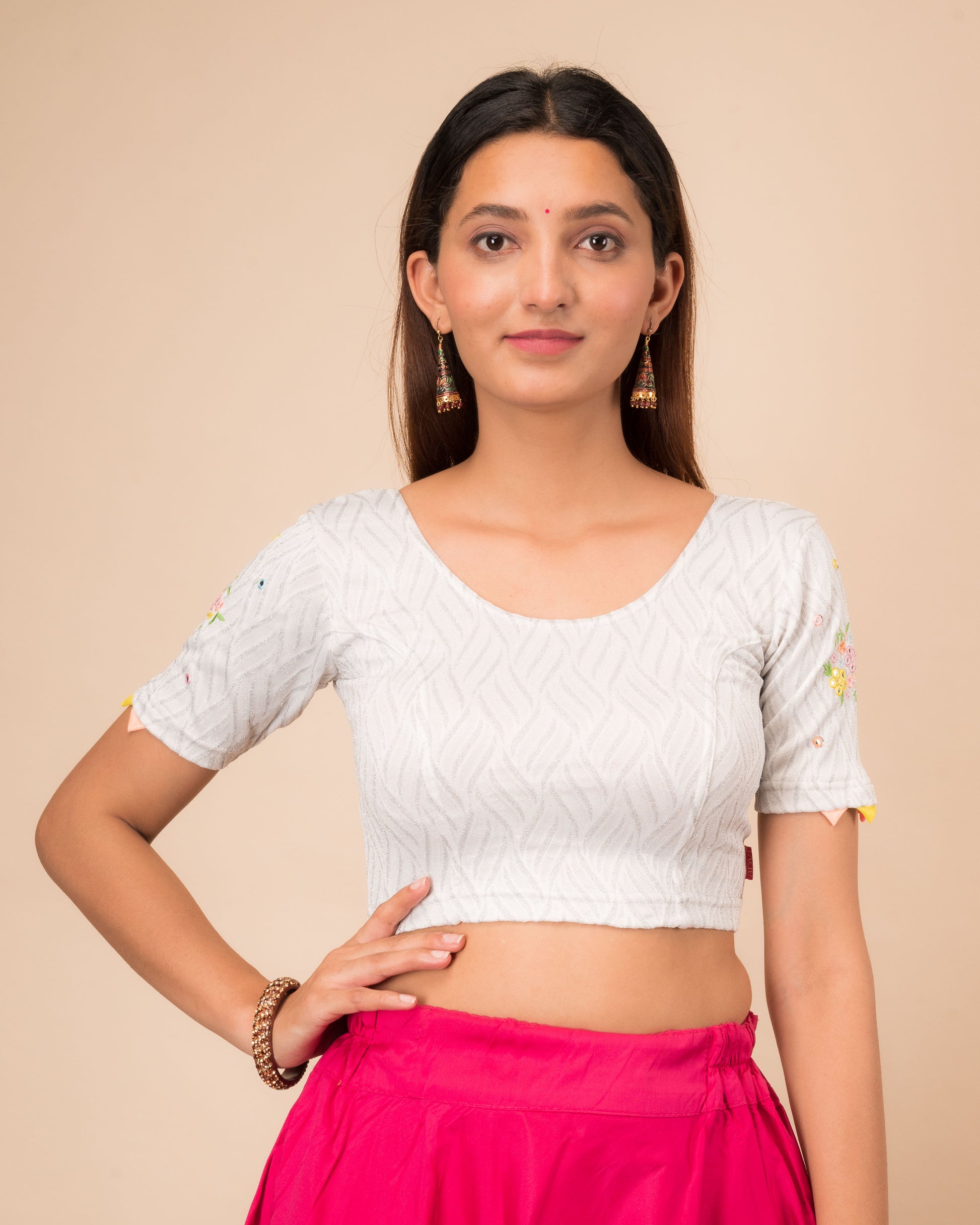 Kinjal Silver Mirror Work Embroidery Stretchable Slip On Blouse By Advi