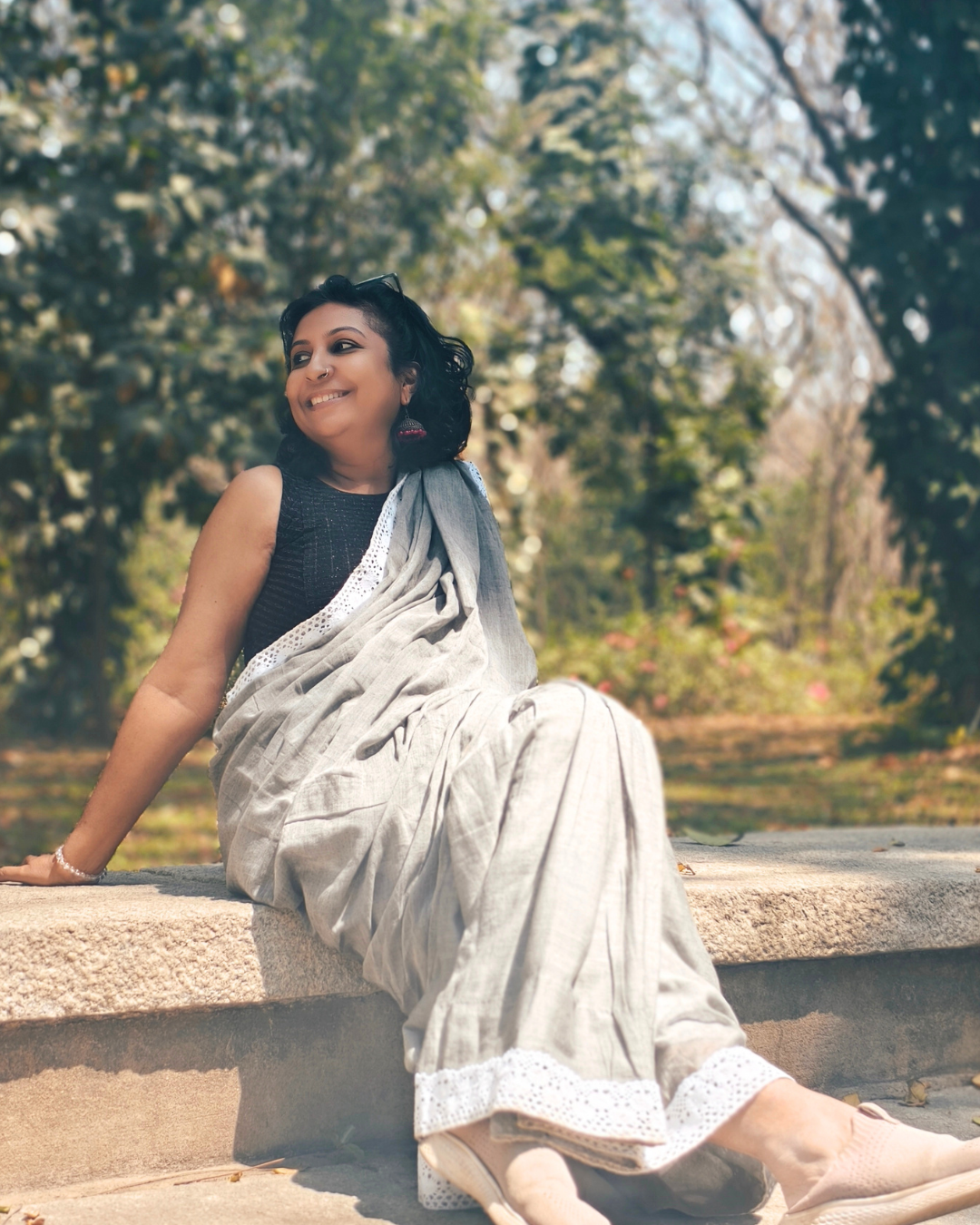 I wore this with a saree earlier and now as a crop top with my dress. So versatile and comfortable.