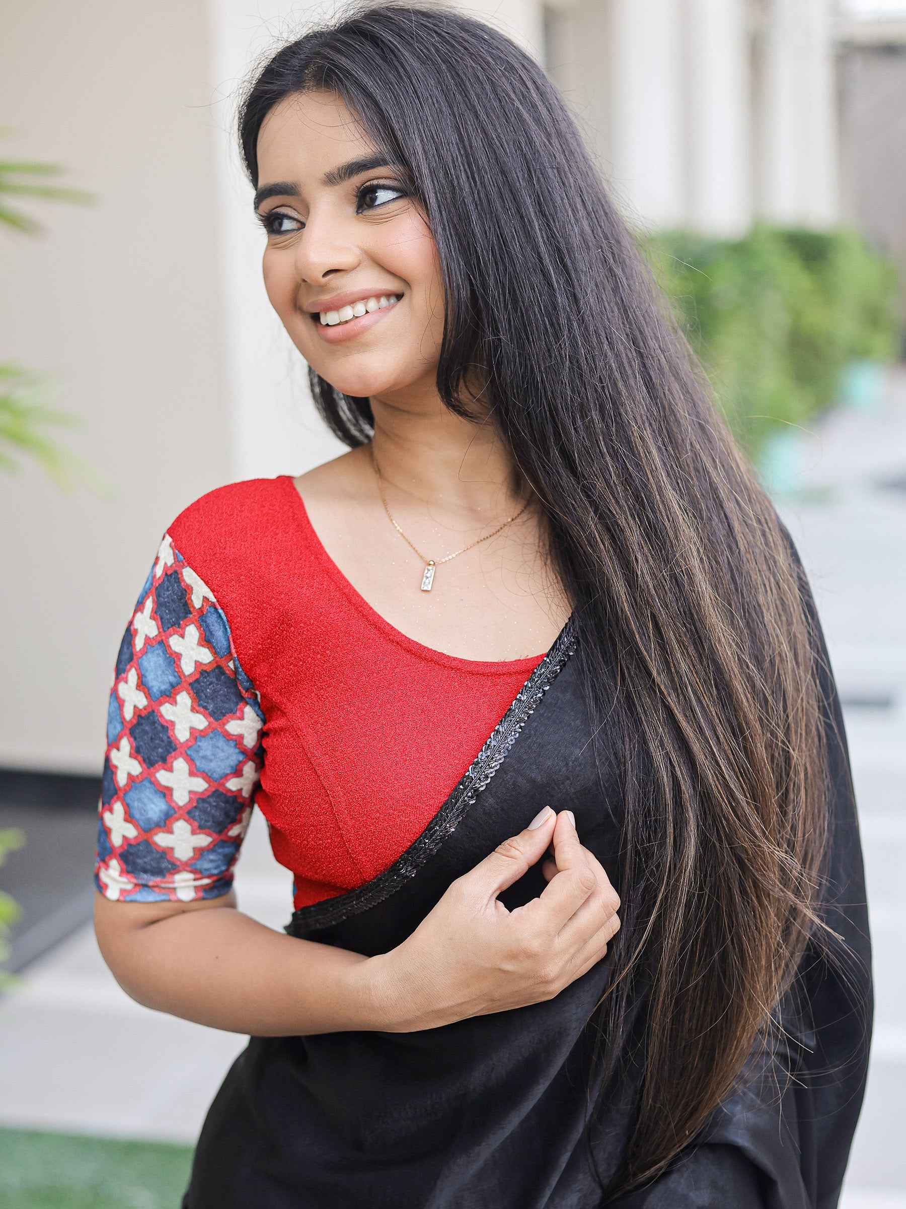 Manek Red Mirror Ajrakh Saree Blouse – Festive Stretchable by Advi