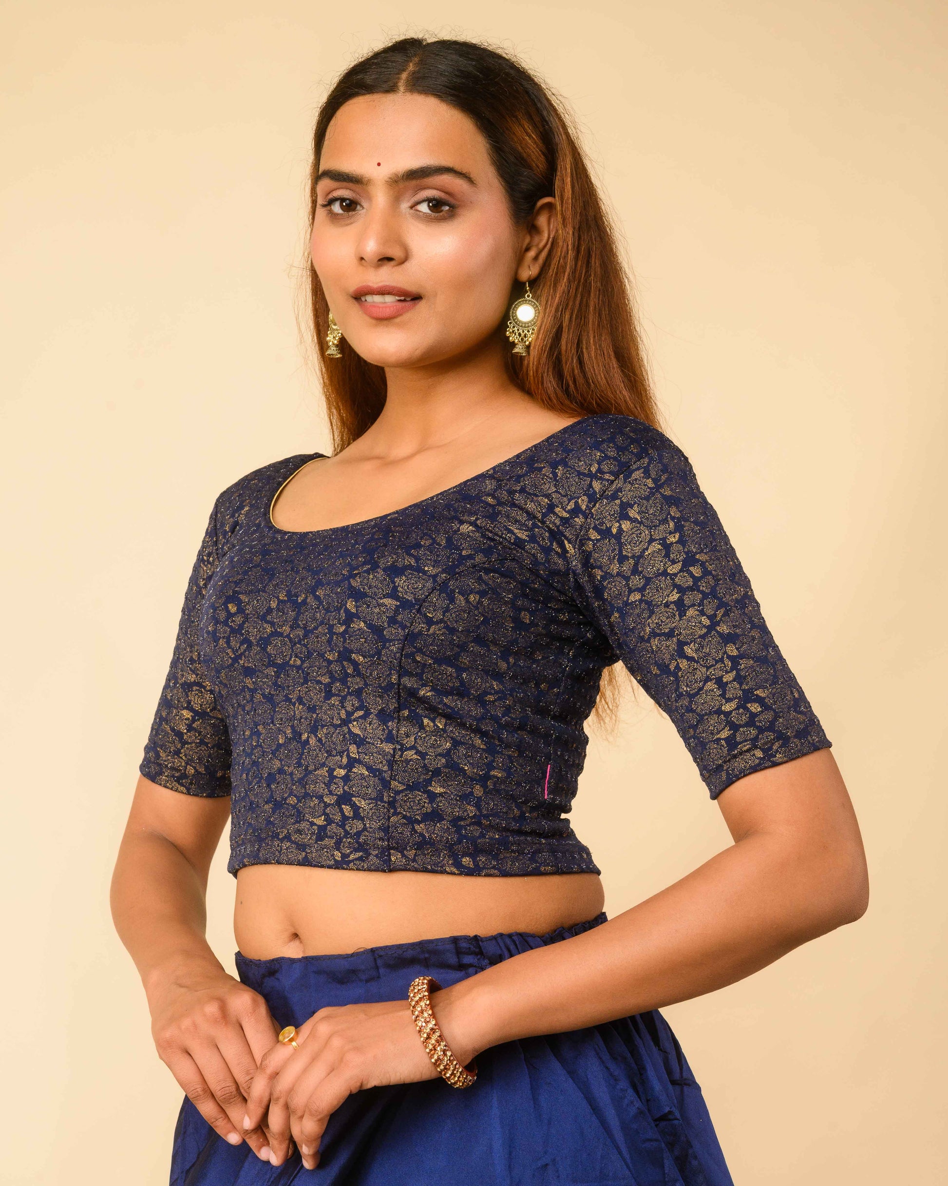 Rutvi Navy Blue Metallic Zari Readymade Stretchable Saree Blouse Advi