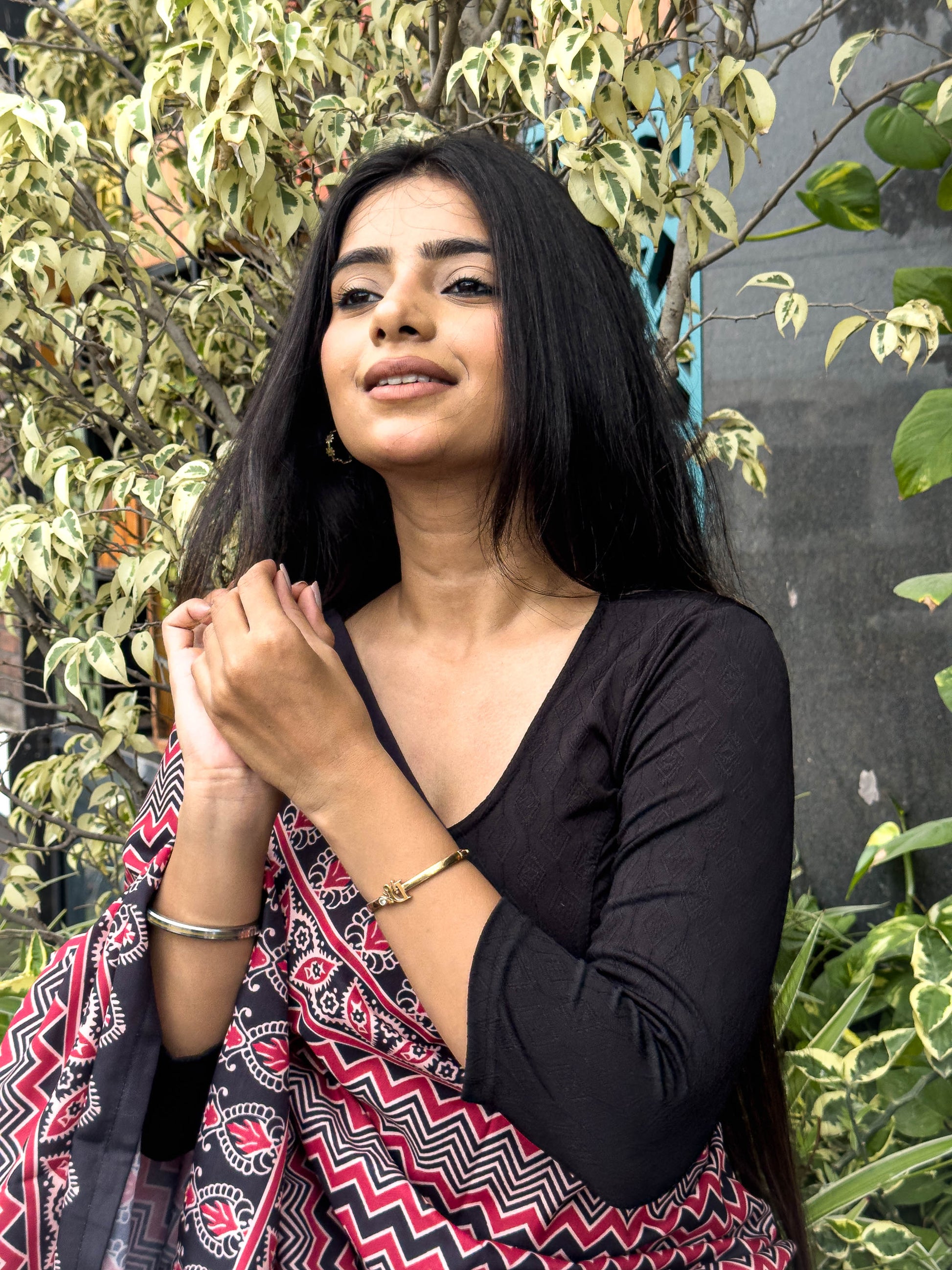 Pair Sakhi with printed cotton sarees, handloom weaves, or light silk sarees for a polished work or casual look. Add minimal jewellery for a neat, understated style.