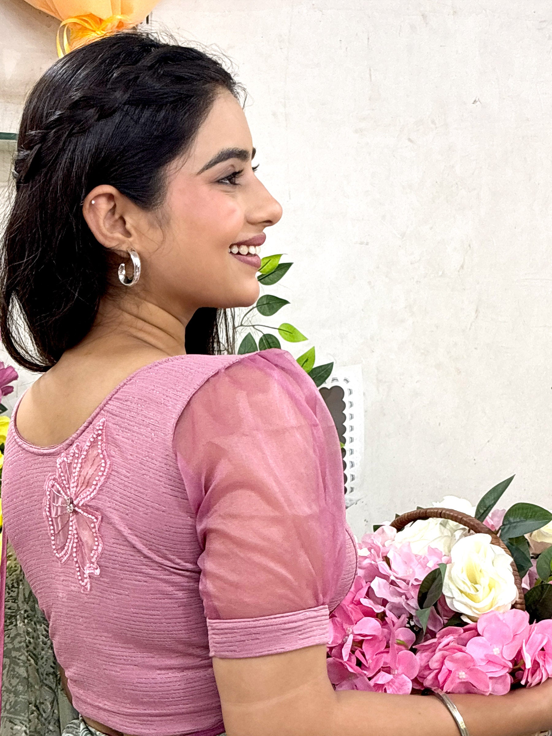 Vaayu Onion Pink Organza Puff Saree Blouse – Designer Stretchable by Advi