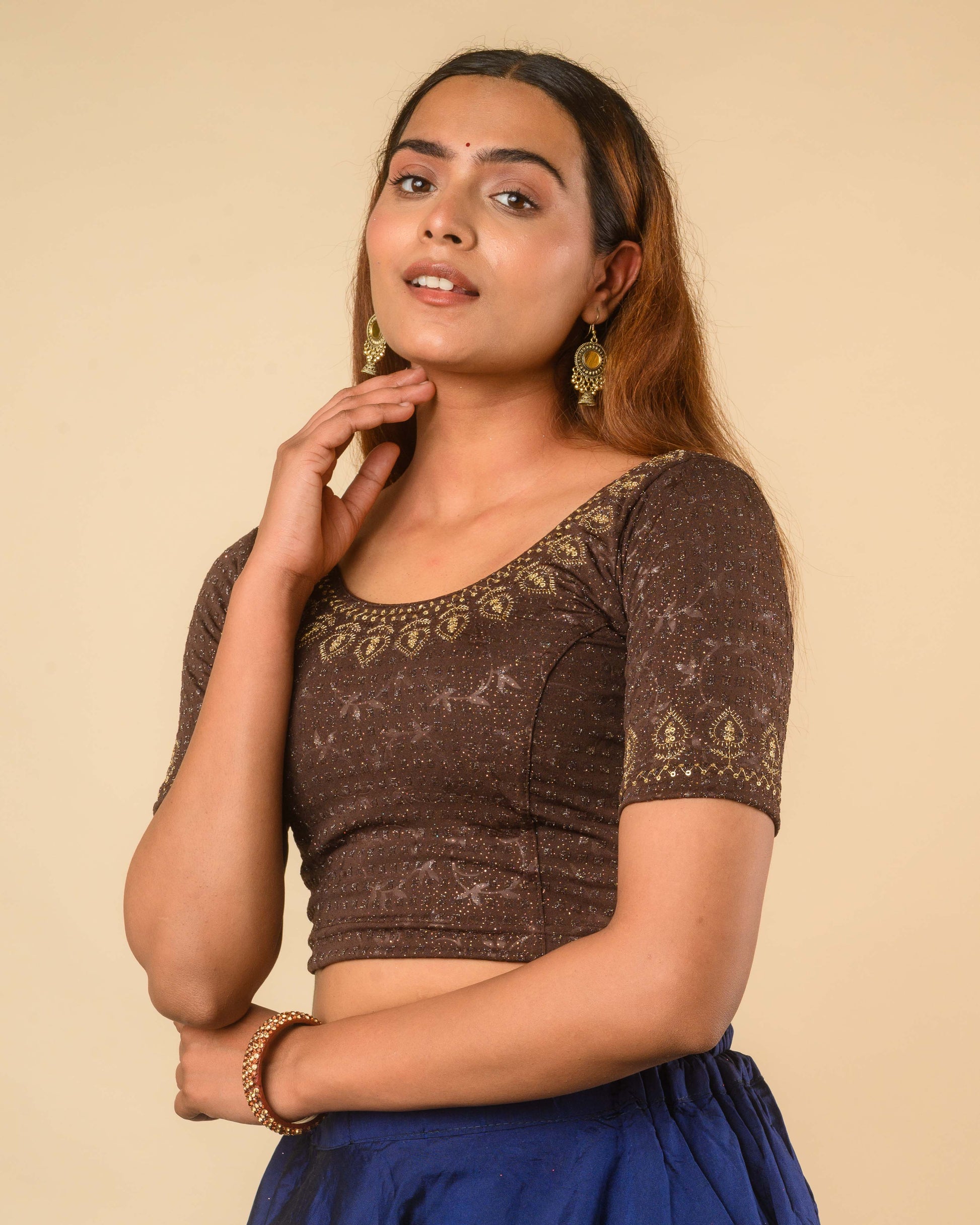 Color: Coffee with gold sequin embroidery